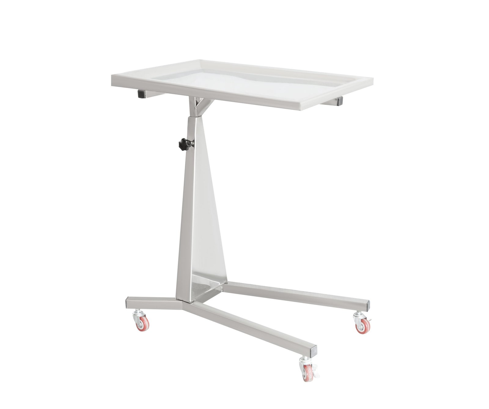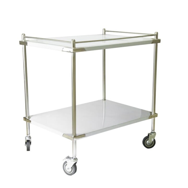 The table’s dimensions, with a shelf measuring 50 cm by 70 cm, offer sufficient space to hold necessary surgical instruments and supplies within easy reach. It is equipped with four swivel casters for effortless maneuverability, two of which have brakes for stable positioning during sensitive procedures.